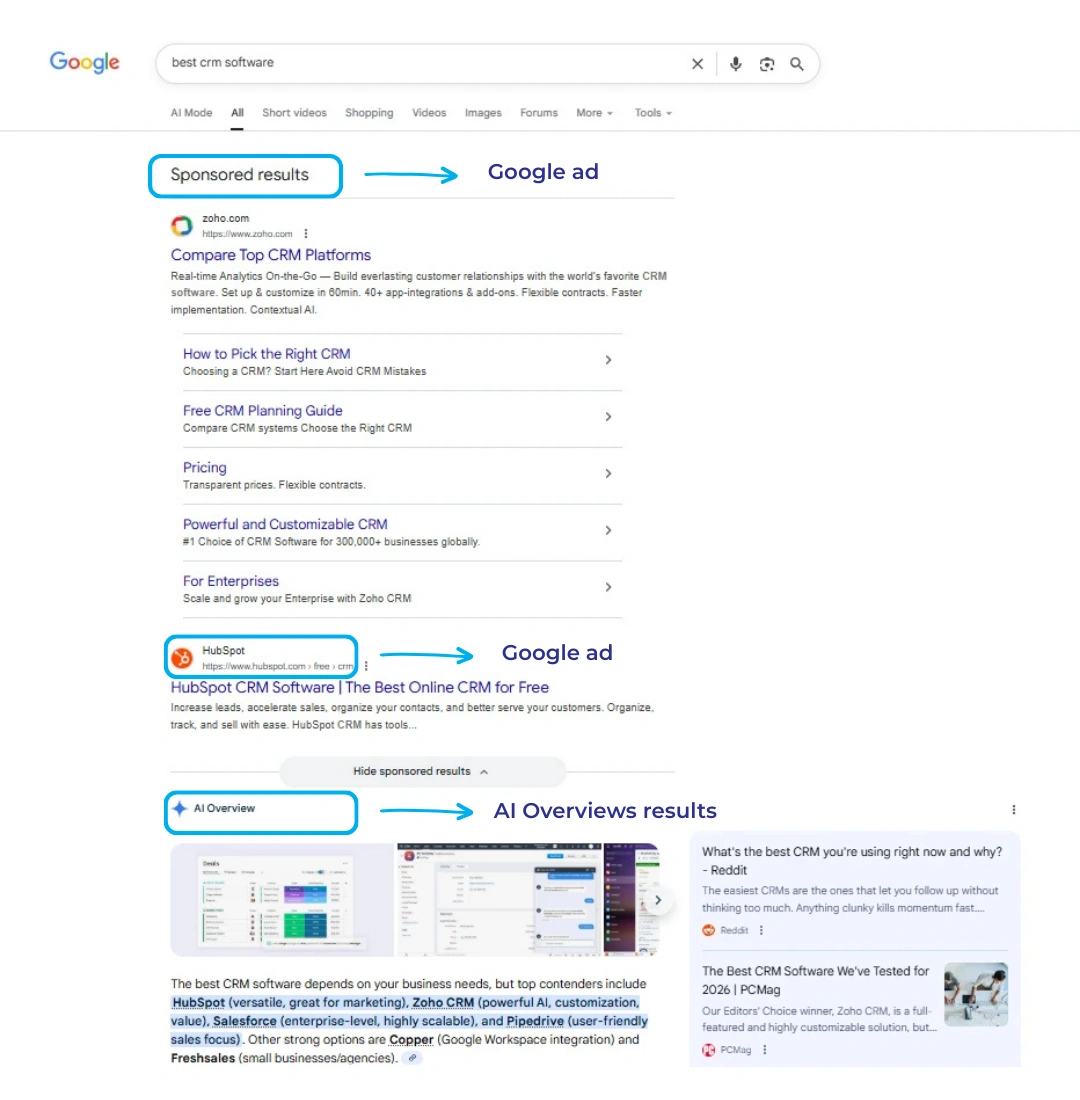 There’s no denying that Google’s AI Overviews changed the face of search seemingly overnight. After all, AI search results are now displayed at the top of results, making it easier for users to get the answers they need without even clicking on a ranking webpage or an ad. Previously, businesses relied on paid and organic methods to drive traffic and conversions their way. Search engine results pages (SERPs) are shifting into something that’s all about making sure the user has the best experience finding the information they need quickly. These SERP changes mean Google ads aren’t always shown at the top of search results anymore, where AI Overviews are applicable, which is a big challenge for brand visibility.