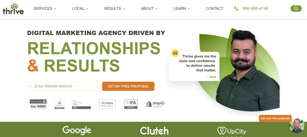 Thrive offers comprehensive digital marketing services with a strong focus on e‑commerce SEO. Their expertise includes technical site audits, content optimisation, and marketplace SEO for platforms like Amazon and Walmart. Thrive is ideal for businesses seeking an all-in-one solution for online visibility and sales growth.