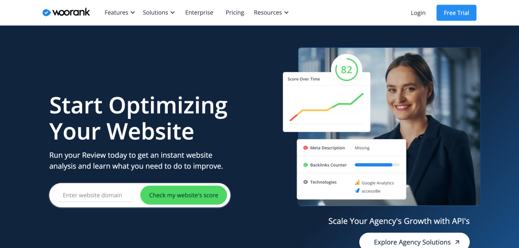 WooRank provides an intelligent approach to SEO automation and reporting, making it ideal for both beginners and experienced marketers. The platform automatically scans websites for technical SEO issues, content performance, and keyword opportunities, then compiles these findings into straightforward reports.