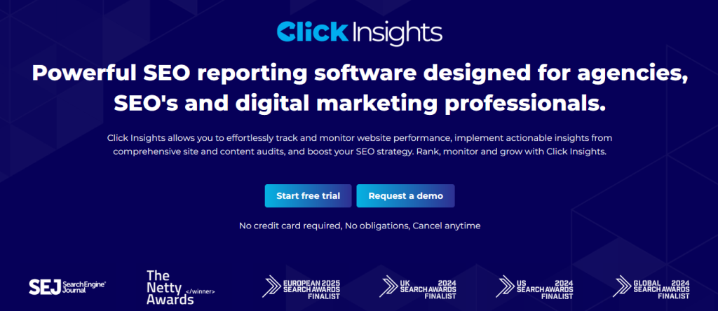 All-in-One SEO Reporting – Click Insights offers easy-to-understand dashboards and powerful reporting features starting at just £10/month.