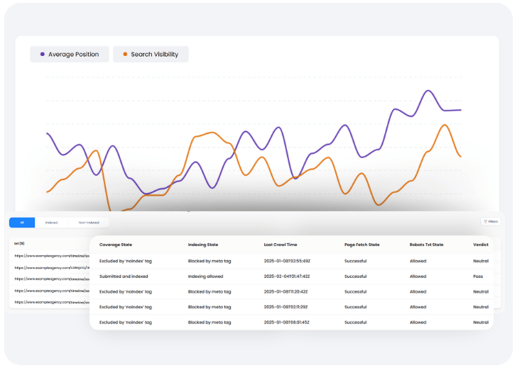 Use our powerful technical SEO audit tool to identify and fix issues that may be limiting your website’s search performance. Run one-time or monthly crawls to track your progress and ensure your site stays error free and optimised.