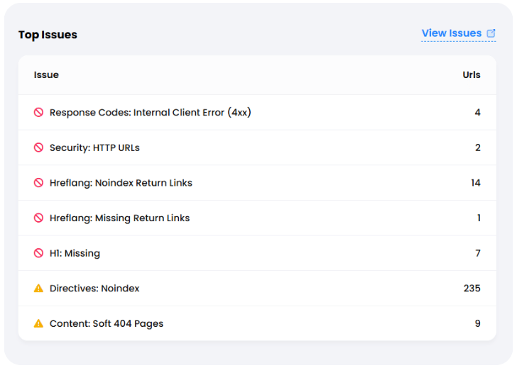 Easy-to-use Dashboard Displaying All Critical SEO Audit Issues